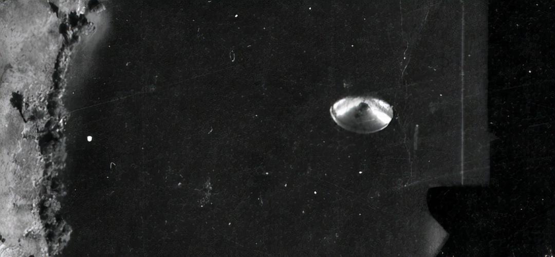 这是历史上拍摄UFO最清晰的一张照片,这张照片乍一看好像并没有UFO,可当你将照片放大后就会发现,有一个圆盘形状泛着金属光泽的物体,酷似外星人的飞碟。