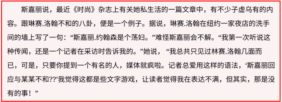 然而,这场轰动一时的“梯震”,后来被斯嘉丽解释为“玩笑”,她声称自己只是和记者开了个玩笑,没想到人家当真了。