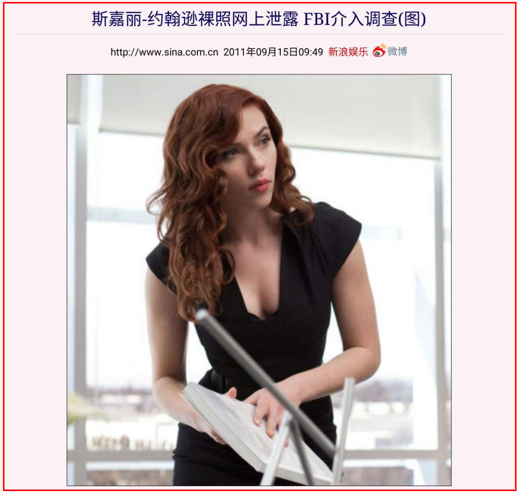 同年,斯嘉丽手机中的私密裸照被泄露,被全网疯传,轰动一时!