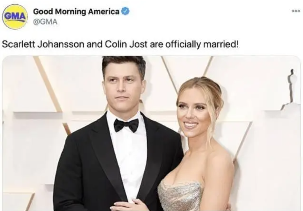 一年后,事业已经登顶的斯嘉丽,决定再次深入探索婚姻的奥秘,与男友科林·乔斯特低调完婚,后来生下了一个儿子。