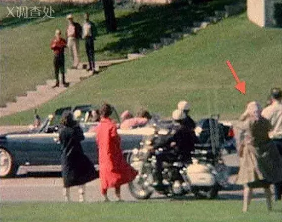 肯尼迪总统遇刺现场有一位神秘女子。她带着墨镜和头巾,与周围人群的穿着打扮都很不一样。
