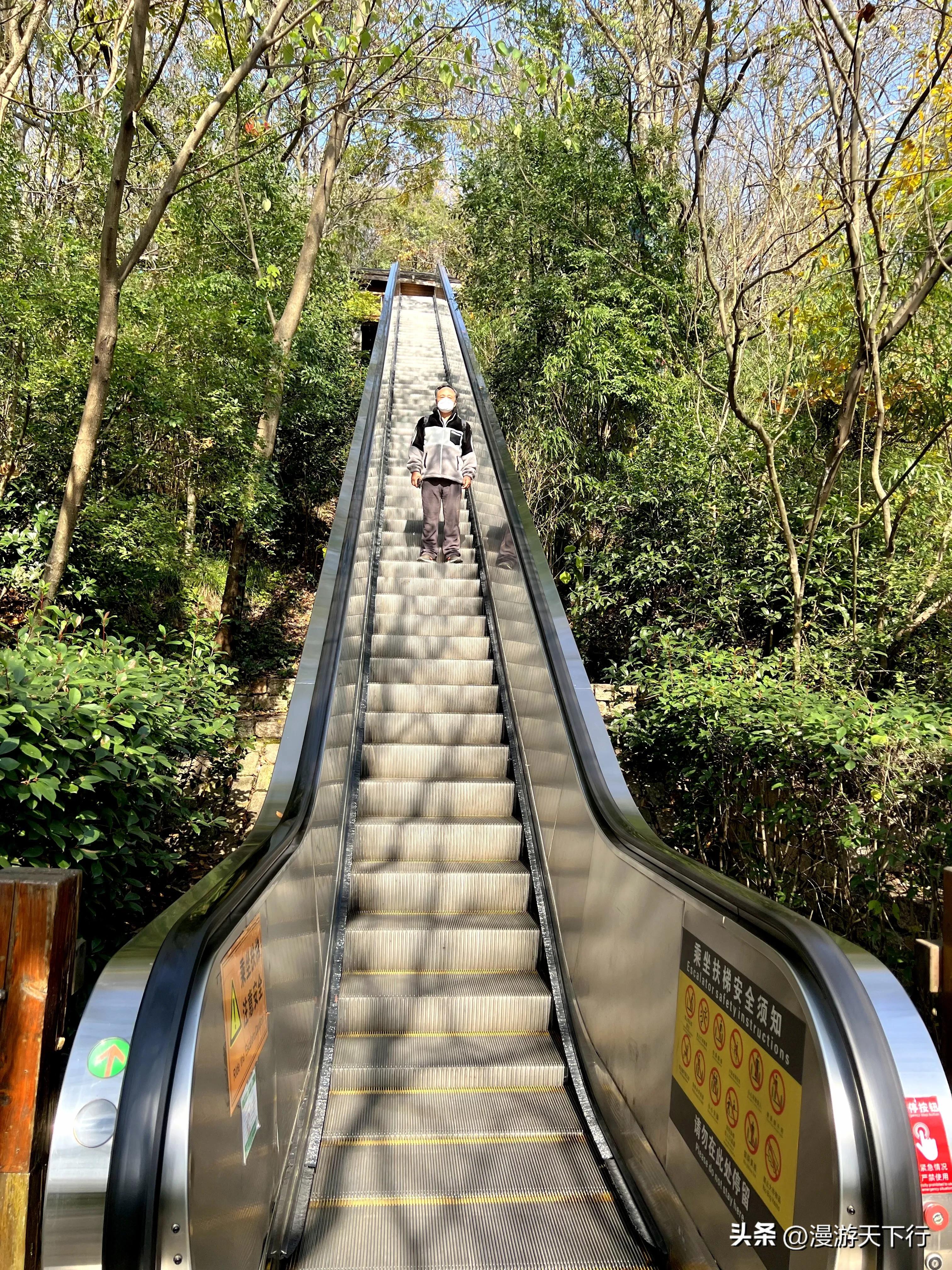 两处陡坡设置了自动扶梯,省去了爬山脚力。