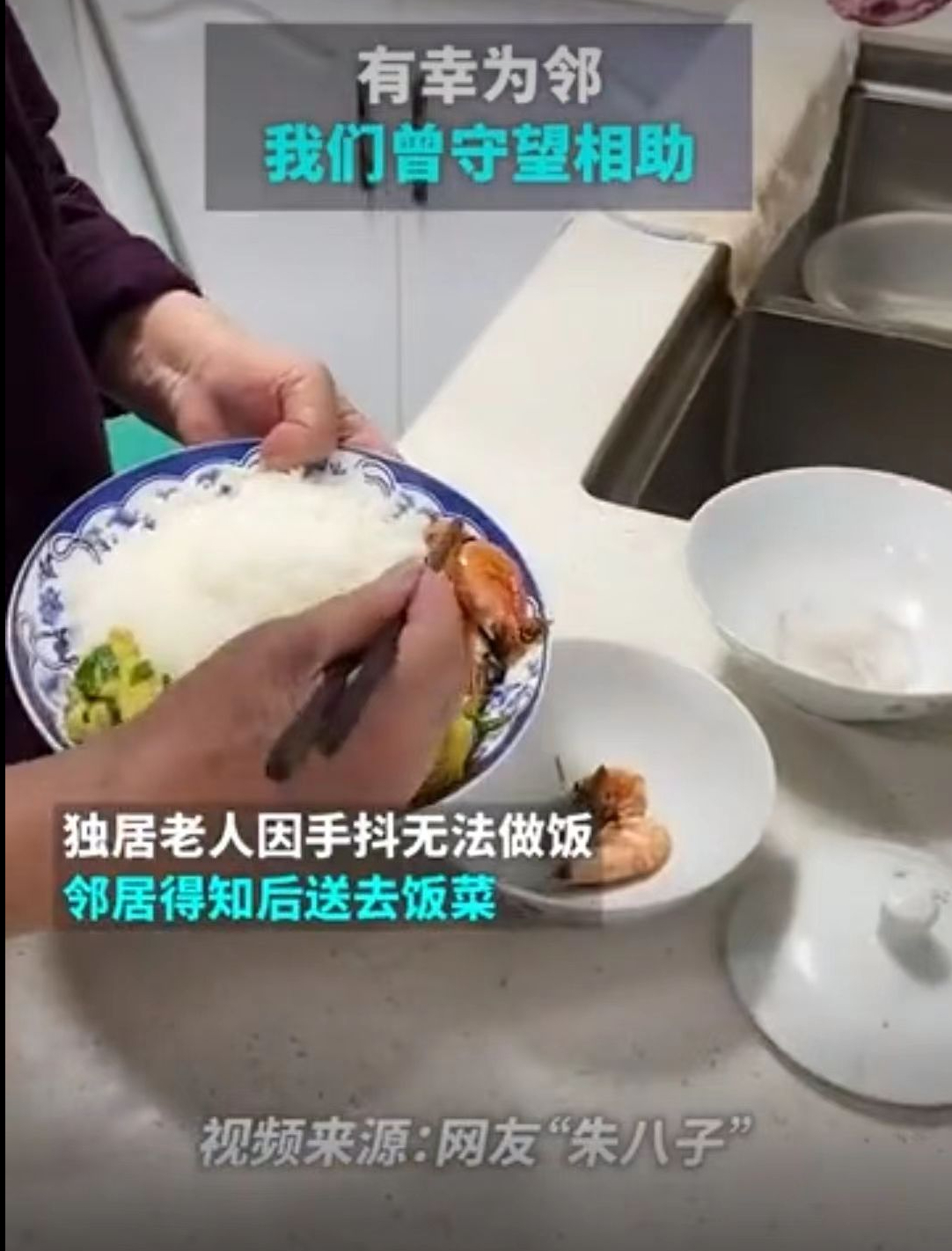 邻居得知后,第一时间送去热饭热菜。