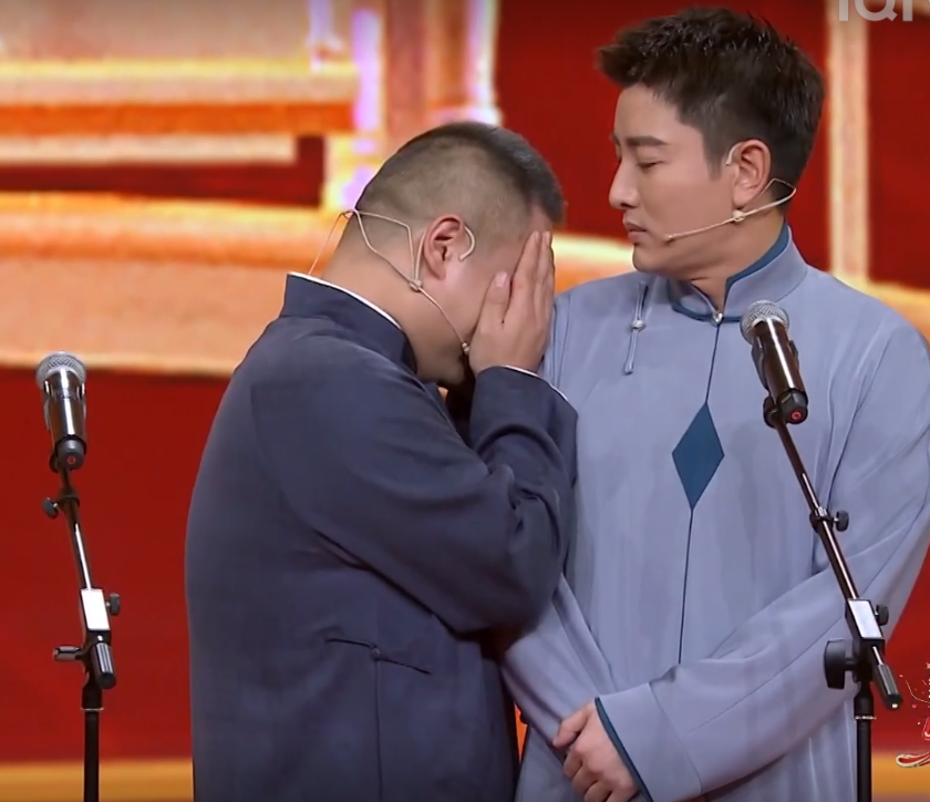 贾乃亮在台上都要哭了,说自己看提词器都不知道往哪接,最后求岳云鹏配合一下,缓和了之后贾乃亮已经满头大汗了,不过这段的逗笑效果也很不错啦!