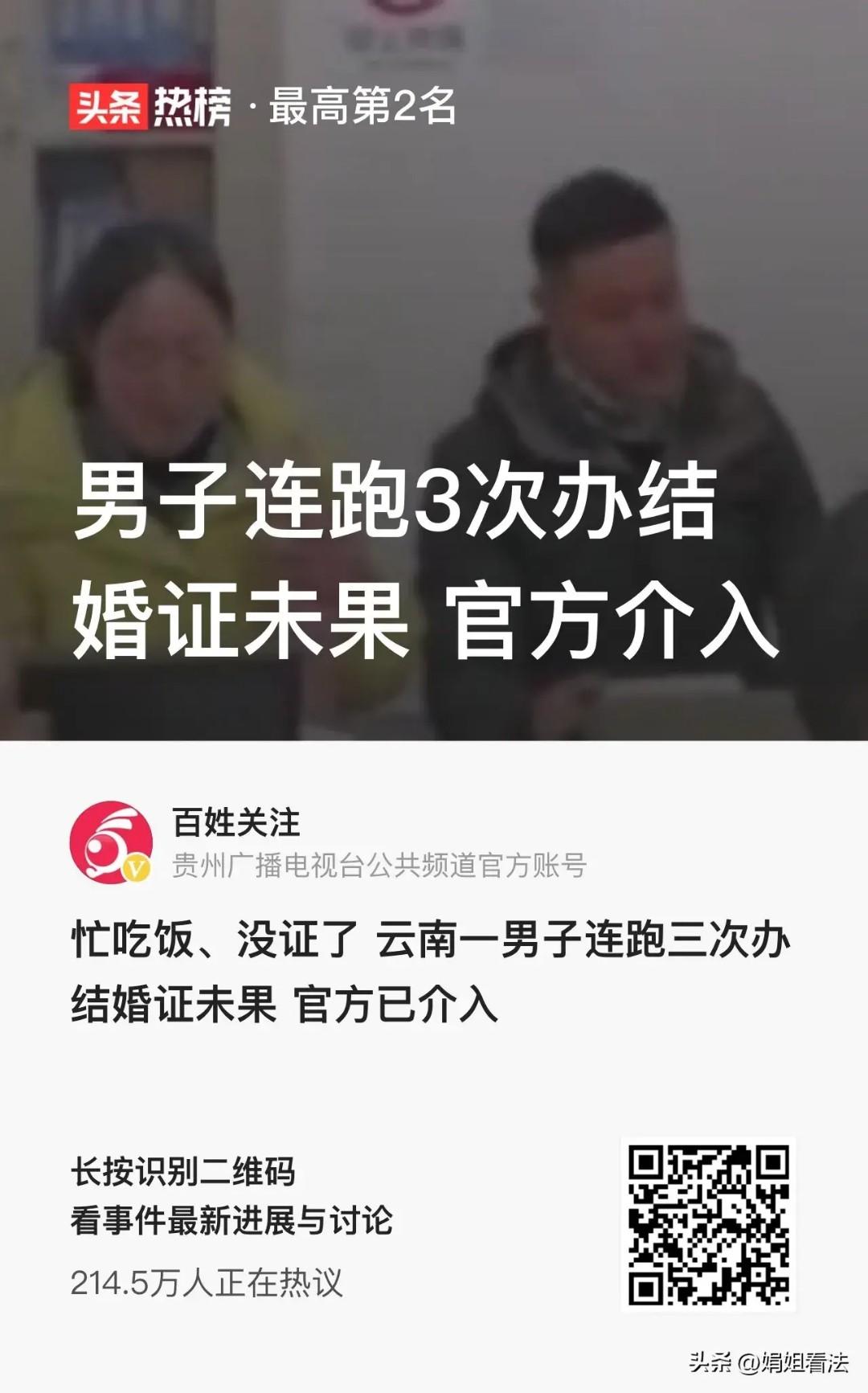 男子连跑3次办结婚证未果 官方介入(男子去领结婚证)